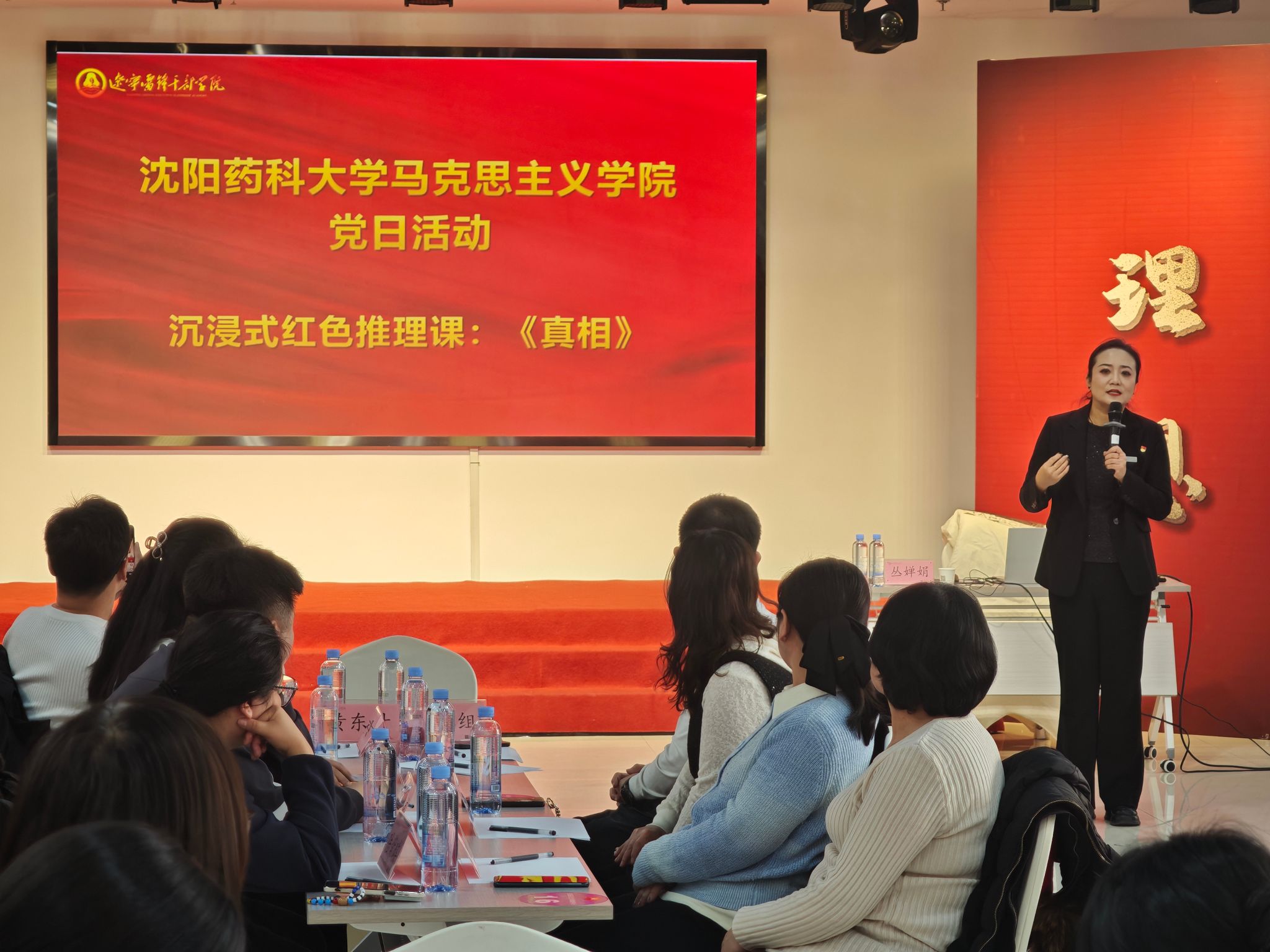 培训采用“仪式教育+沉浸式课程”相结合的模式,内容丰富,形式鲜活。庄重的“雷锋入列式”开班仪式拉开培训序幕,迅速营造出严肃认真的学习氛围,让参训教师在仪式感中感悟雷锋精神的时代价值。随后,沉浸式红色推理课《真相》精彩开启。该课程以沈阳“九君子”的真实历史故事为蓝本,通过情景模拟、角色扮演、互动分享等多元形式,带领教师沉浸式重温峥嵘岁月,在潜移默化中激发爱国情怀,传承和弘扬伟大抗战精神。
